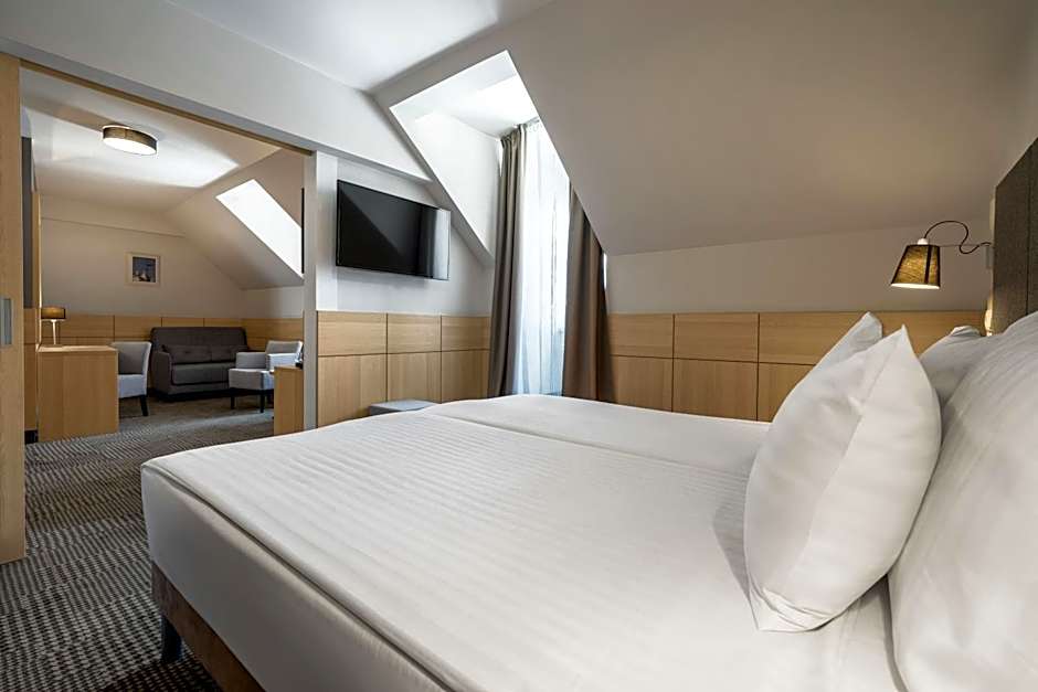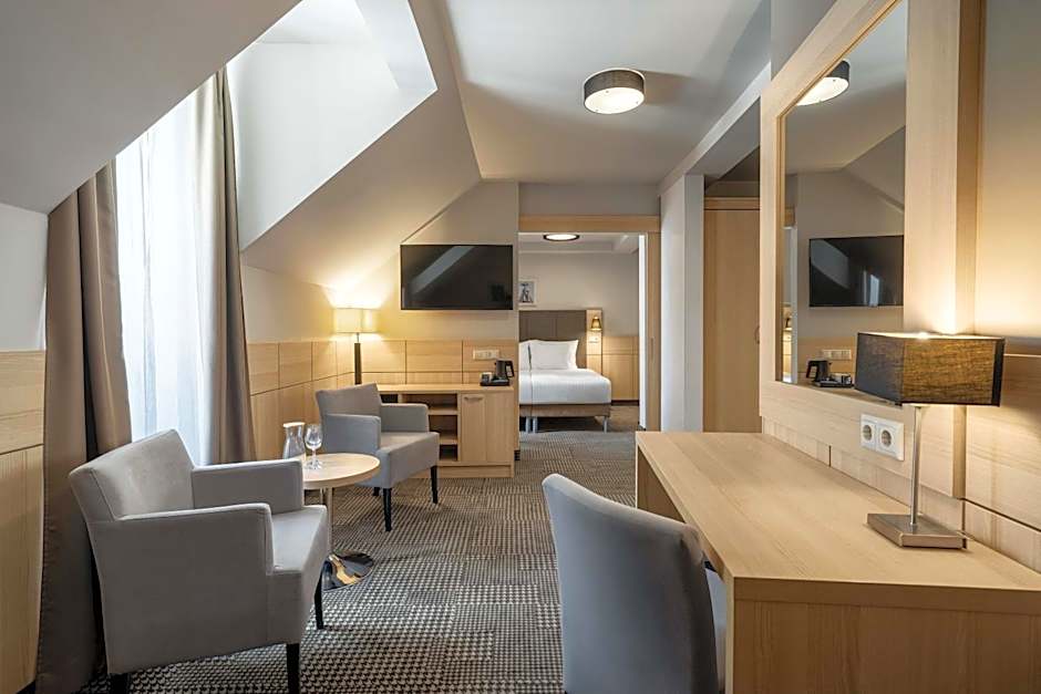 This spacious Suite room offers two separate rooms-a bedroom and a living room with seating area. 1.5-hour SPA access for 2 people is included in the price. SPA zone visit and SPA treatment time must be booked in advance.